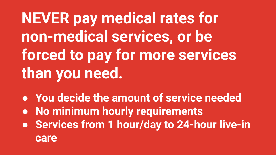 Our caregiver network helps our clients with 1 to 24 hour care (no minimums), an on-call 24/7 hotline, flexibility, and personal responsiveness.
