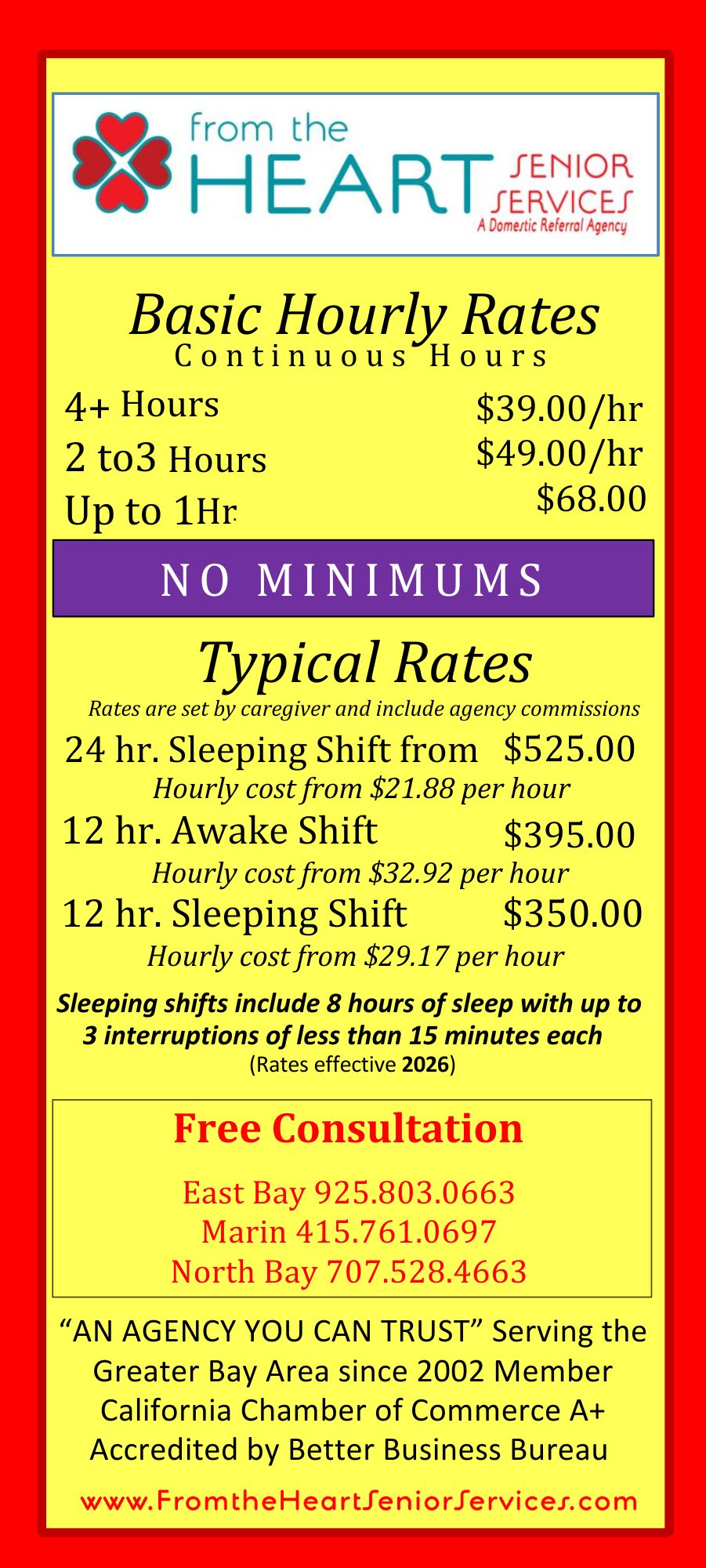 - Rates reflect total cost paid to caregiver which includes agency commission.